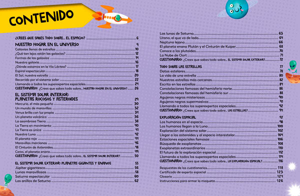 Mientras te conviertes en todo un experto del espacio, podrás responder cuestionarios, obtener un certificado especial y utilizar las piezas recortables incluidas para construir tu propio modelo del sistema solar.