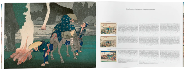 Tomadas en conjunto, las estampas de Las sesenta y nueve estaciones del Kisokaido suponen no sólo un animado ejemplo del arte de la xilografía, con composiciones audaces y un uso experimental del color, sino también un encantador tapiz del Japón del siglo XIX, mucho antes de que apareciera el fantasma de la industrialización. Esta Edición de TASCHEN presenta la serie con el formato y la excelencia que merece. Las imágenes reproducidas provienen de la única primera edición de la serie completa que se conoce, lo que asegura la mejor calidad para esta legendaria obra. Una pieza perfecta con la que acompañar las Cien famosas vistas de Edo publicada por TASCHEN, una delicia visual al tiempo que un testimonio de primer orden del antiguo Japón imperial.