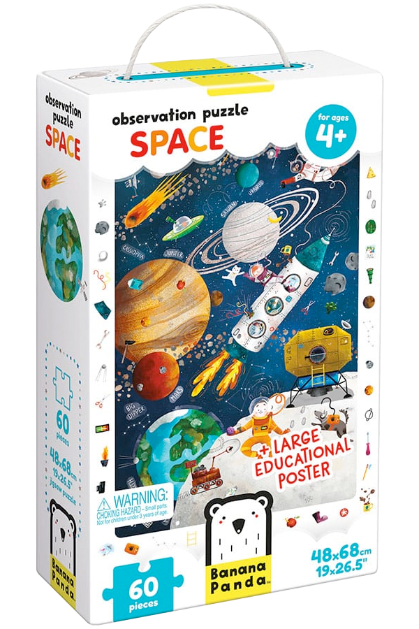 Hay muchísimas cosas interesantes que los pequeños observadores encontrarán en este detallado y colorido rompecabezas de 60 piezas. Primero, arma el rompecabezas y luego busca los objetos en el marco. ¿Podrás encontrarlos todos?